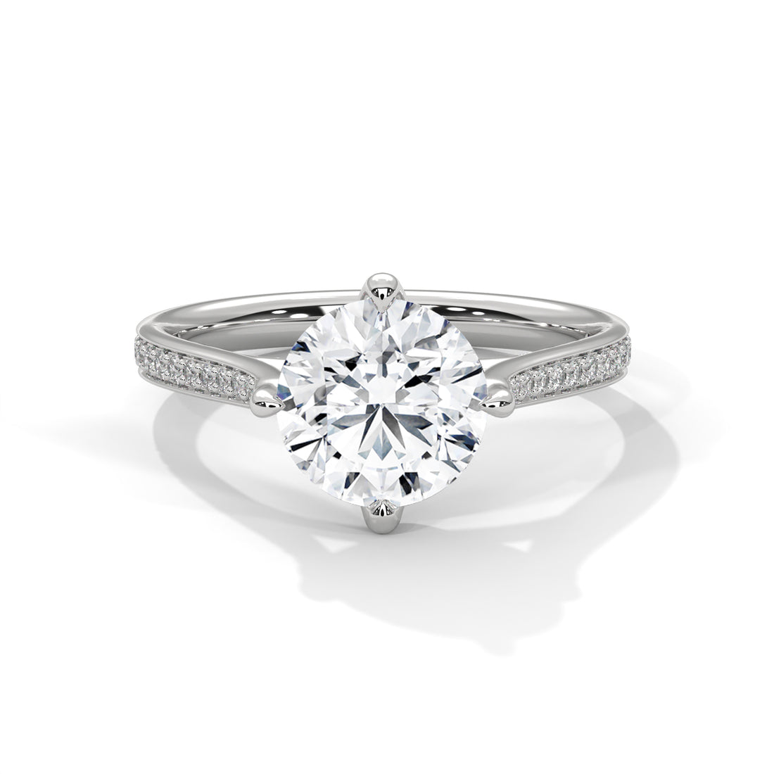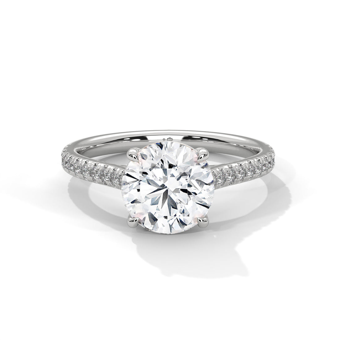 Round Diamond Pavé Engagement Ring in White Gold – Round Brilliant Solitaire Ring – Diamond Accent Engagement Ring – Classic Proposal Ring