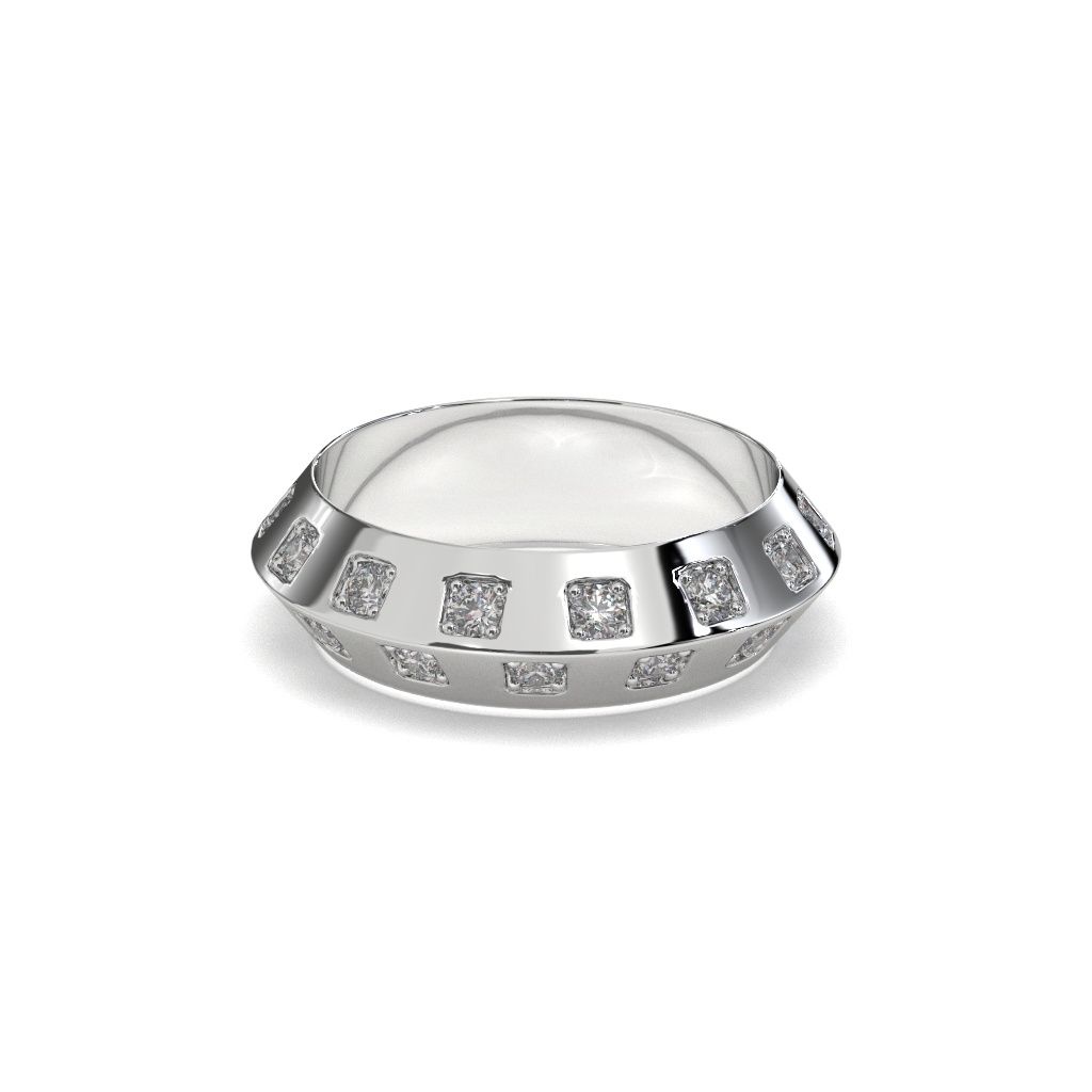Sterling Silver Square Diamond Band Ring, Modern Unisex Jewelry