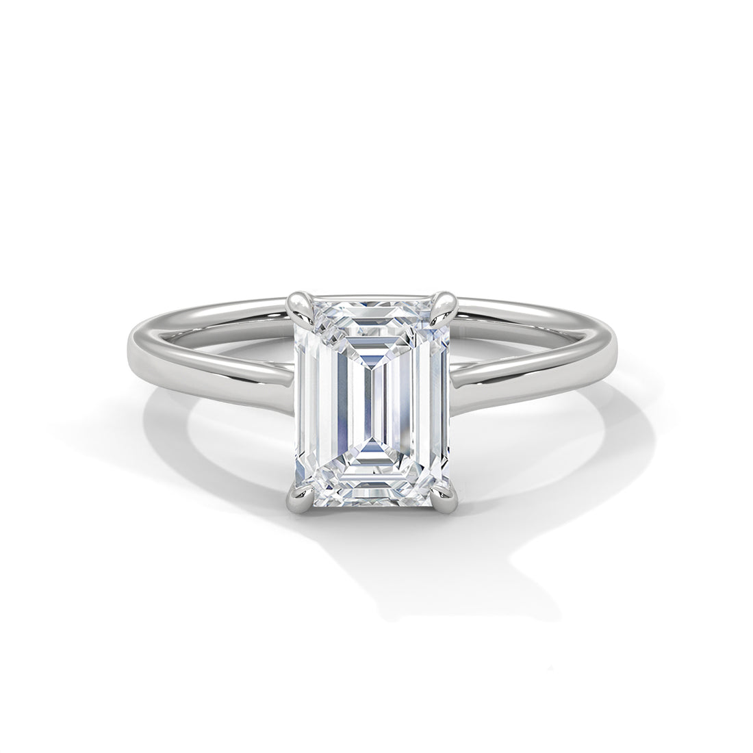 Emerald Cut Diamond Engagement Ring in White Gold – Classic Emerald Cut Solitaire Diamond Ring