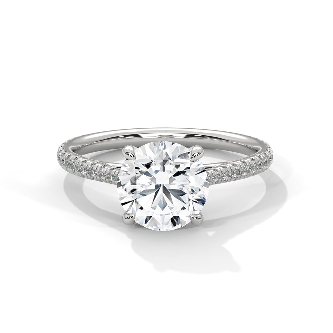 Round Diamond Pavé Engagement Ring in White Gold – Classic Round Brilliant Diamond Ring with Pavé Band