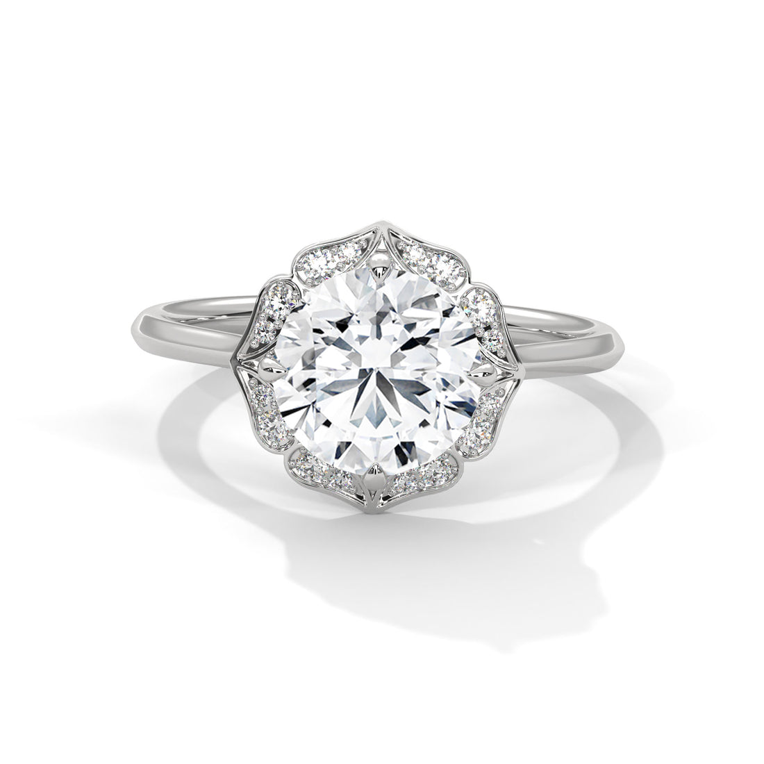 Vintage Halo Round Diamond Engagement Ring in White Gold – Floral Halo Diamond Ring – Classic Luxury Proposal Ring