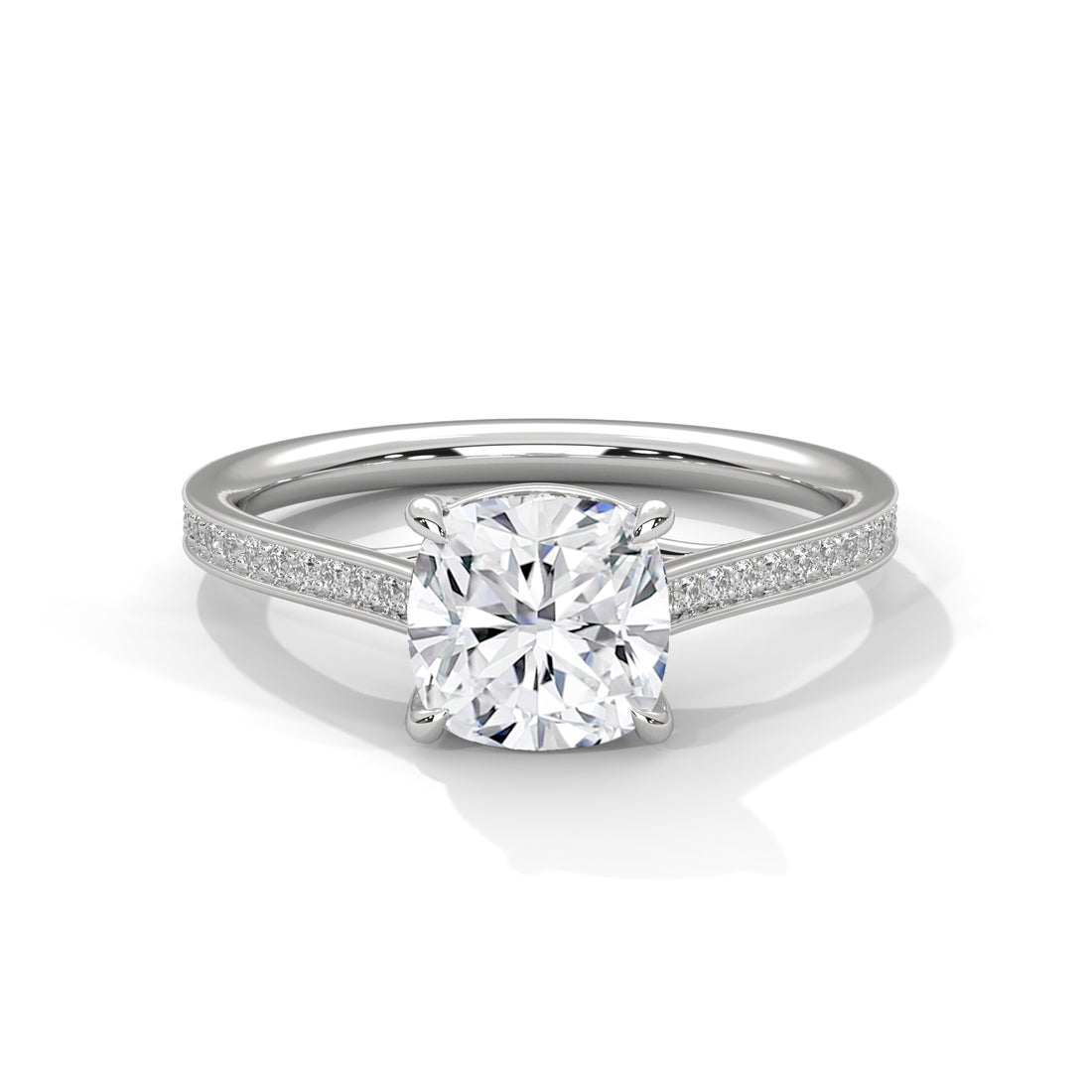 Cushion Cut Diamond Engagement Ring in White Gold – Hidden Halo Pavé Diamond Ring – Luxury Cushion Diamond Proposal Ring