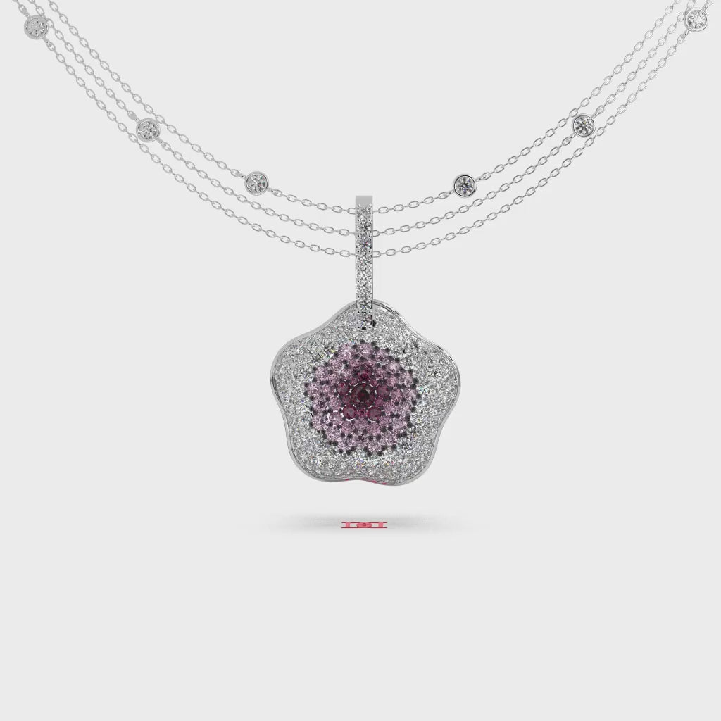 925 Sterling Silver Floral Halo Pendant, Pink Diamond Statement Necklace