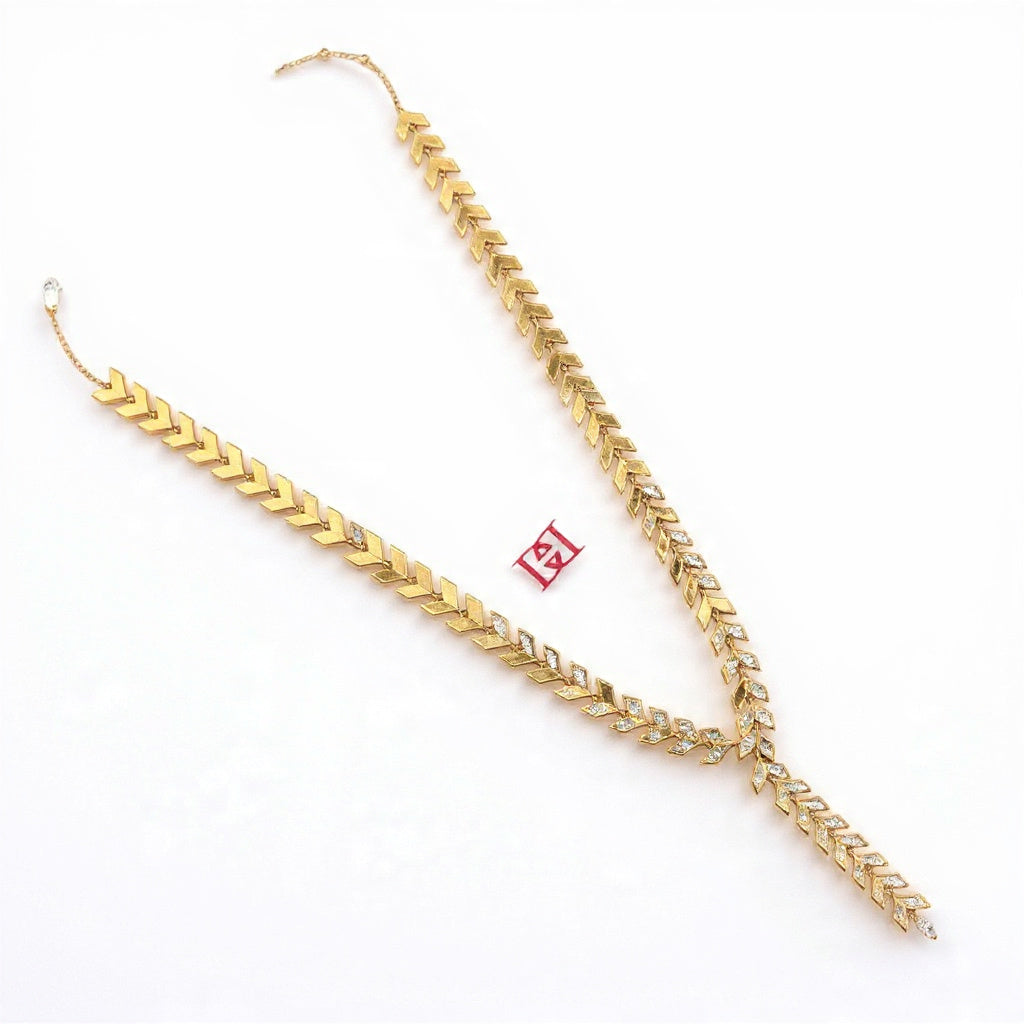 Luxury Leaf Diamond Necklace 925 Sterling Silver | Designer Drop Necklace | White Diamond Fine Jewelry | Handmade Statement Necklace