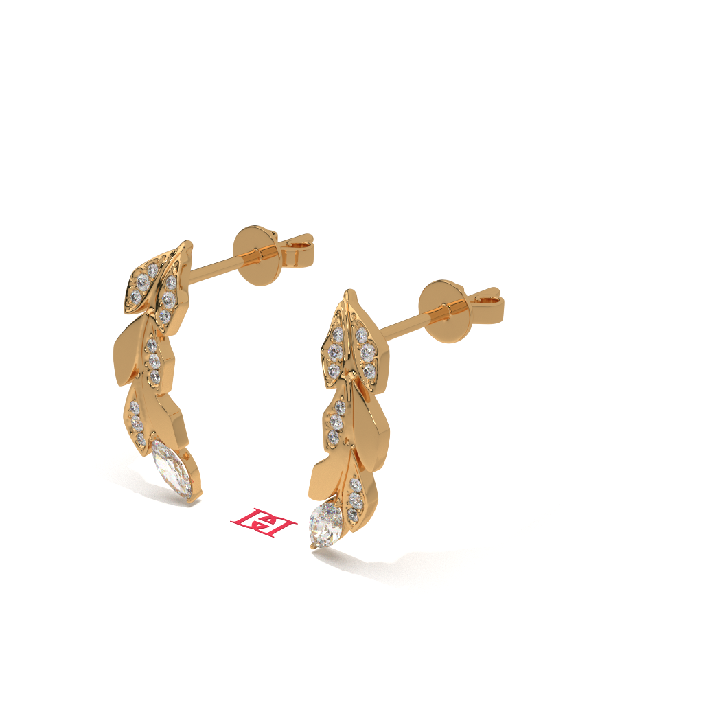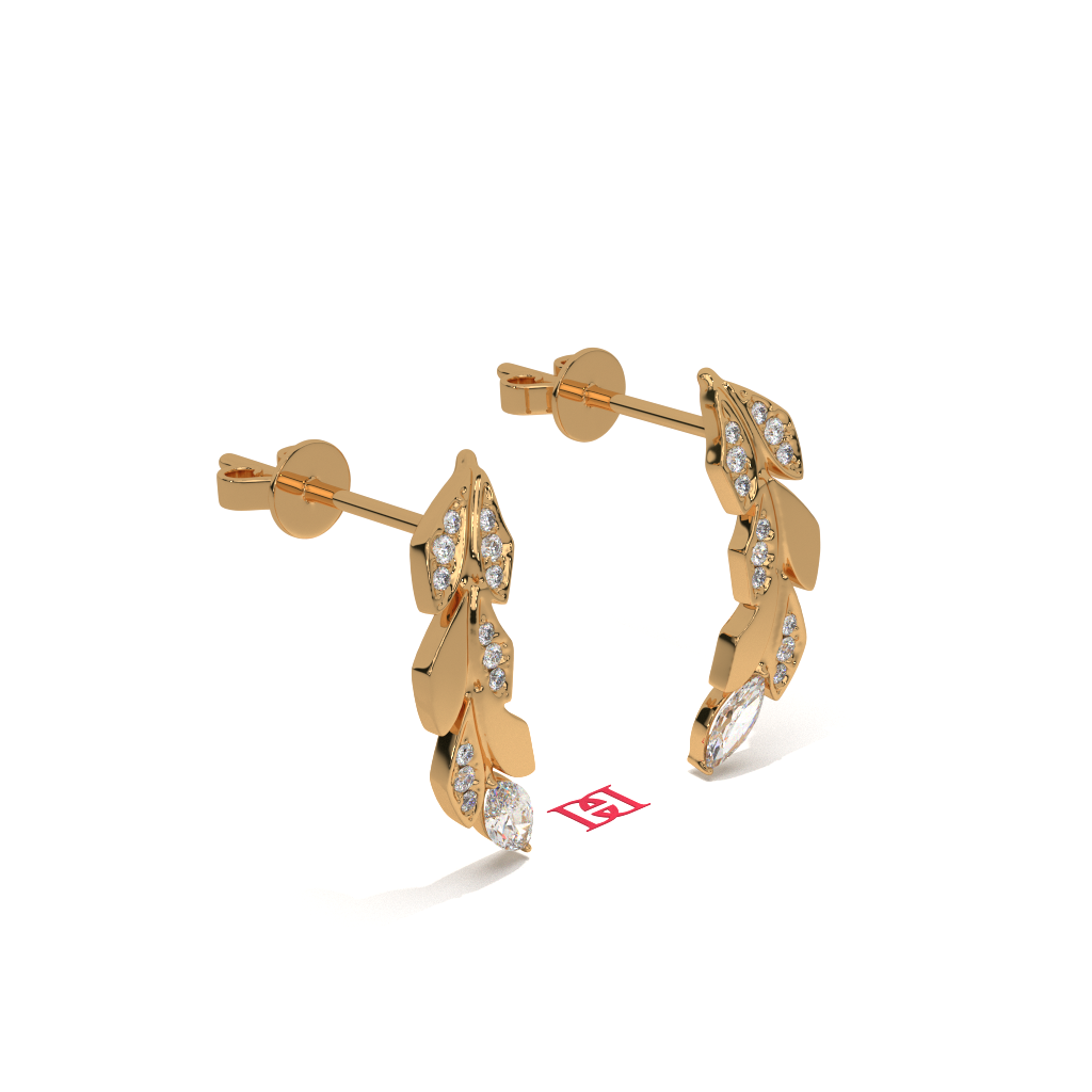 Luxury Silver Diamond Leaf Earrings | White Diamond Drop Earrings | 925 Sterling Silver Designer Earrings | Elegant Statement Jewelry