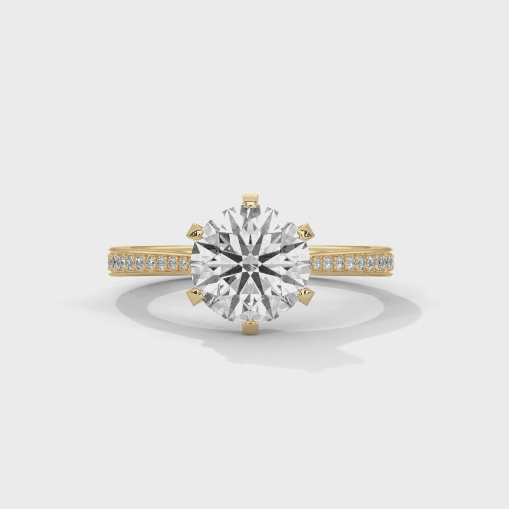 Round Brilliant Diamond Engagement Ring in 14K Yellow Gold, 1.50 Carat Lab Grown Diamond with Pavé Band