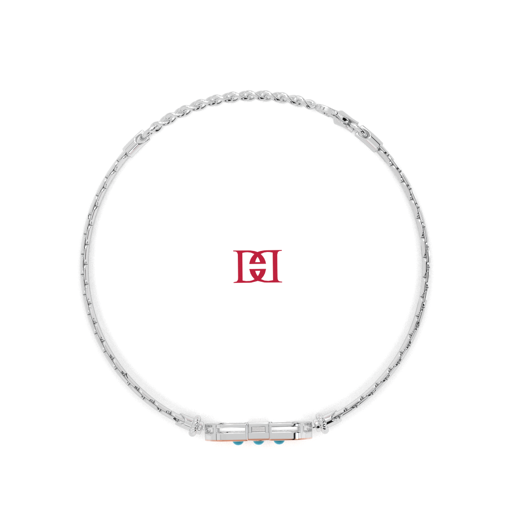 Sterling Silver Turquoise Bracelet with White Stone Accents