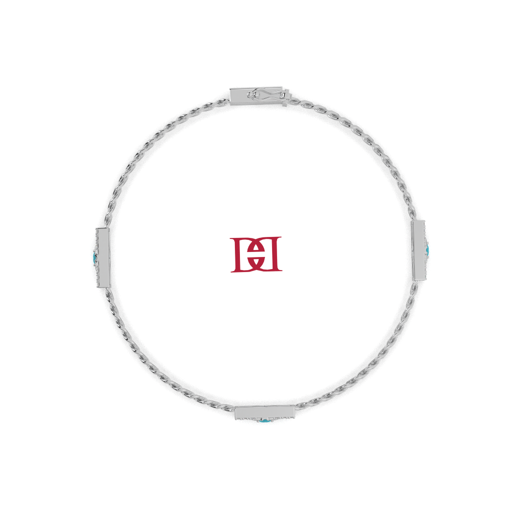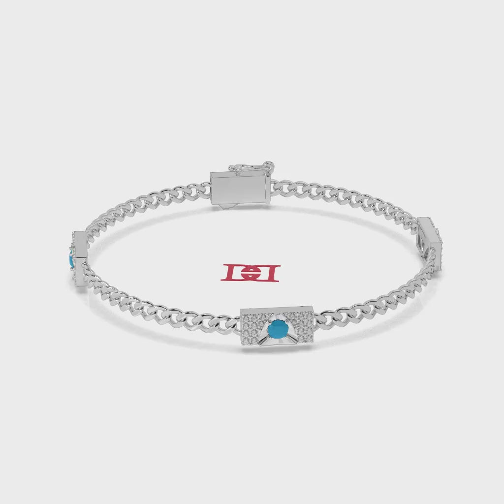 Sterling Silver Turquoise Chain Bracelet, White Diamond Accent
