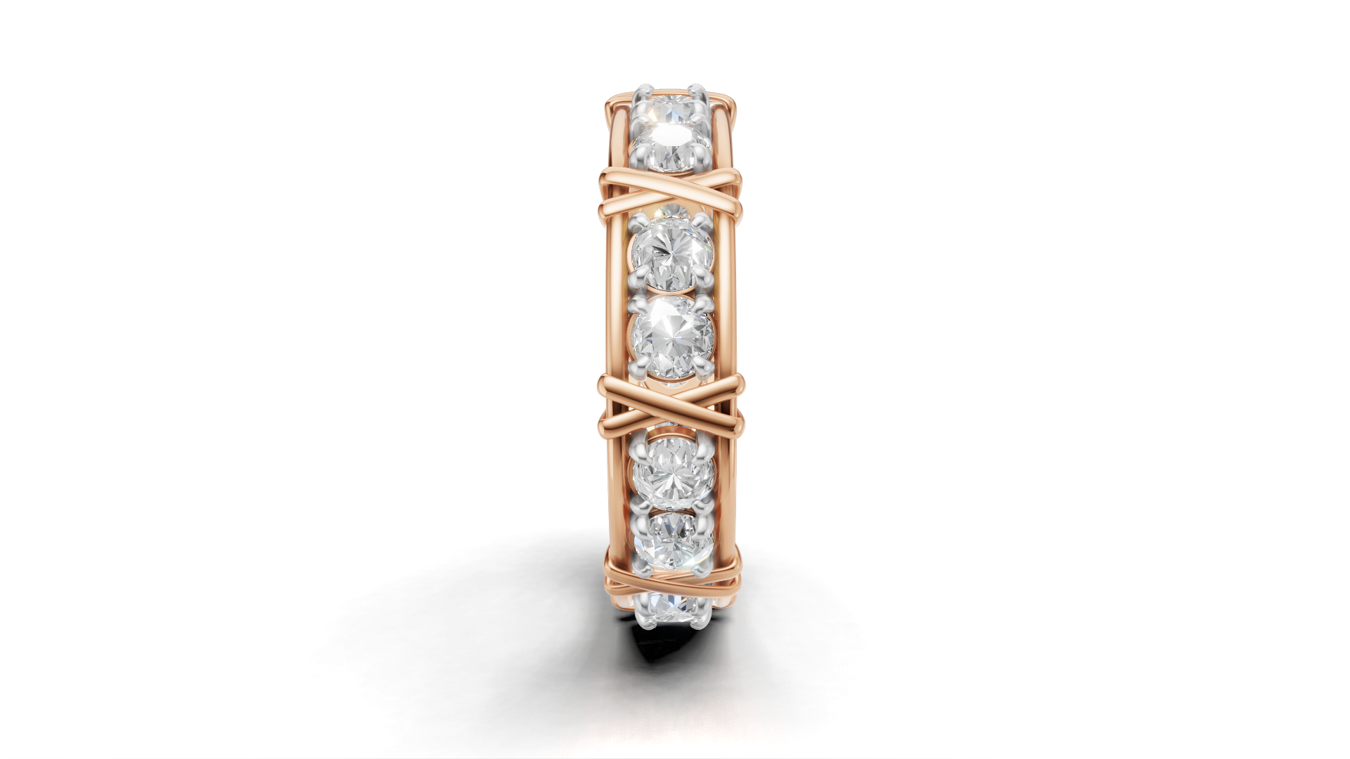 The bold X-style setting enhances the brilliance of each stone while giving the ring a strong, luxurious presence. Whether worn as an anniversary ring, wedding band, or statement daily wear piece, this design delivers timeless beauty with modern elegance.
