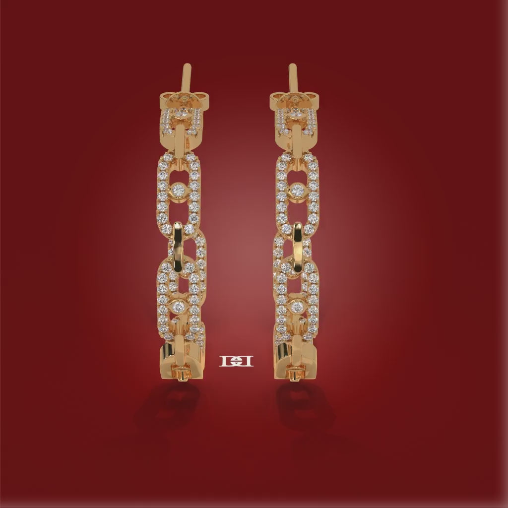 The Solstice Hoops are a testament to the power of contrast and light. Their sleek, linked design, with its alternating sections of black enamel and sparkling diamonds, creates a beautiful play of light and shadow. These earrings are a powerful and elegant statement, designed to bring a touch of dramatic sophistication to your look, whether for a special occasion or everyday style.
