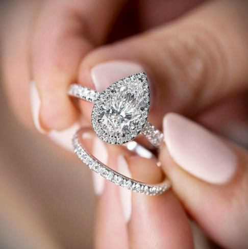 - Consider a halo setting that emphasizes the diamond's elongated shapeÂ