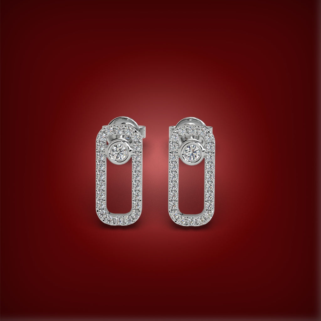 The Cadence Earrings are a beautiful statement of effortless style. Each earring features a delicate, diamond-paved link that brings a captivating rhythm of light to your look. Their simple yet striking design makes them a perfect accessory for both day and night.