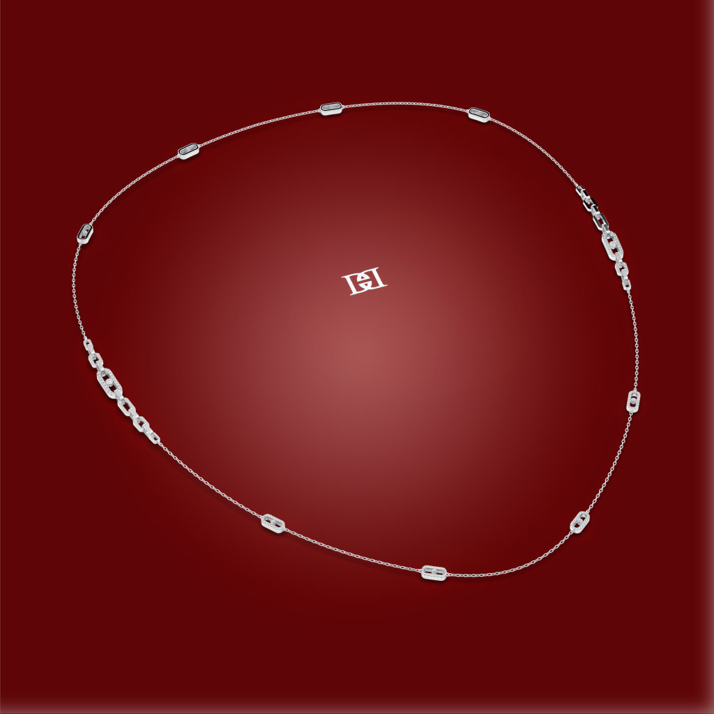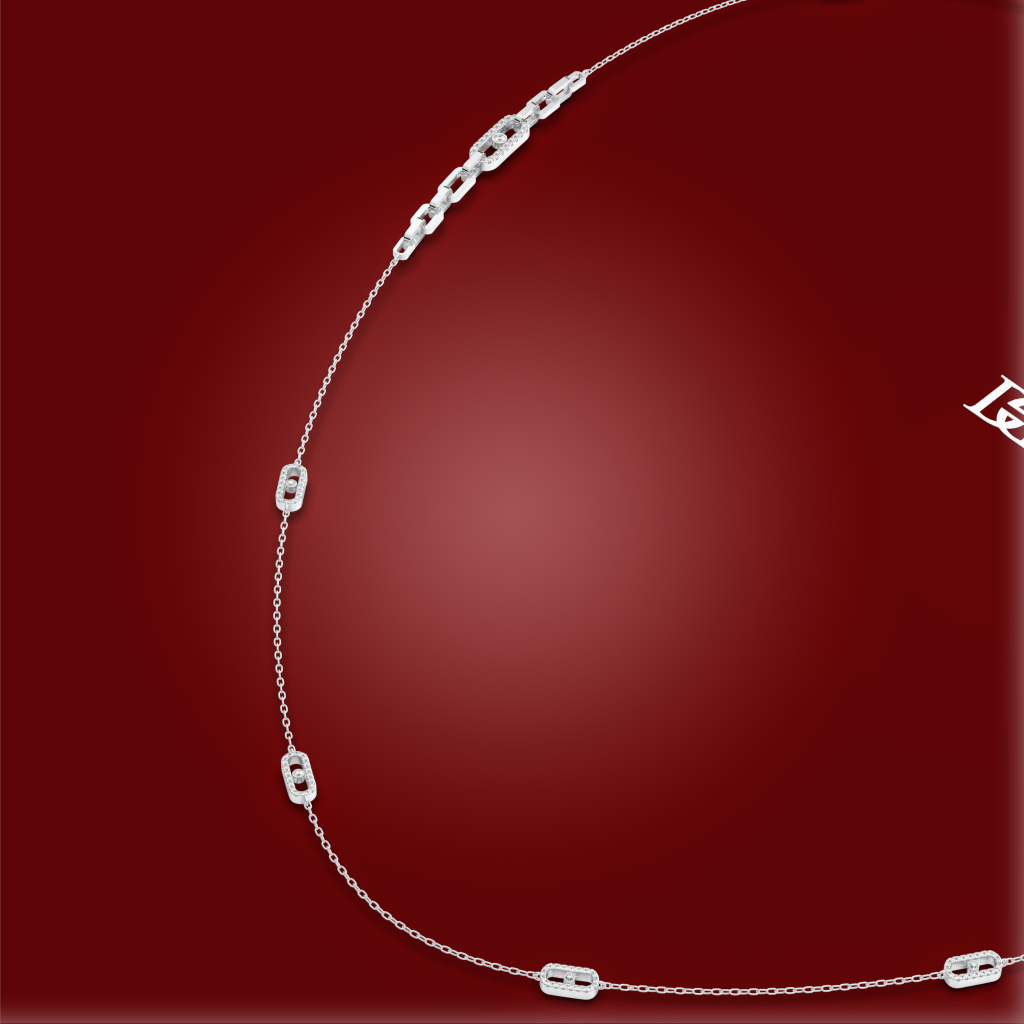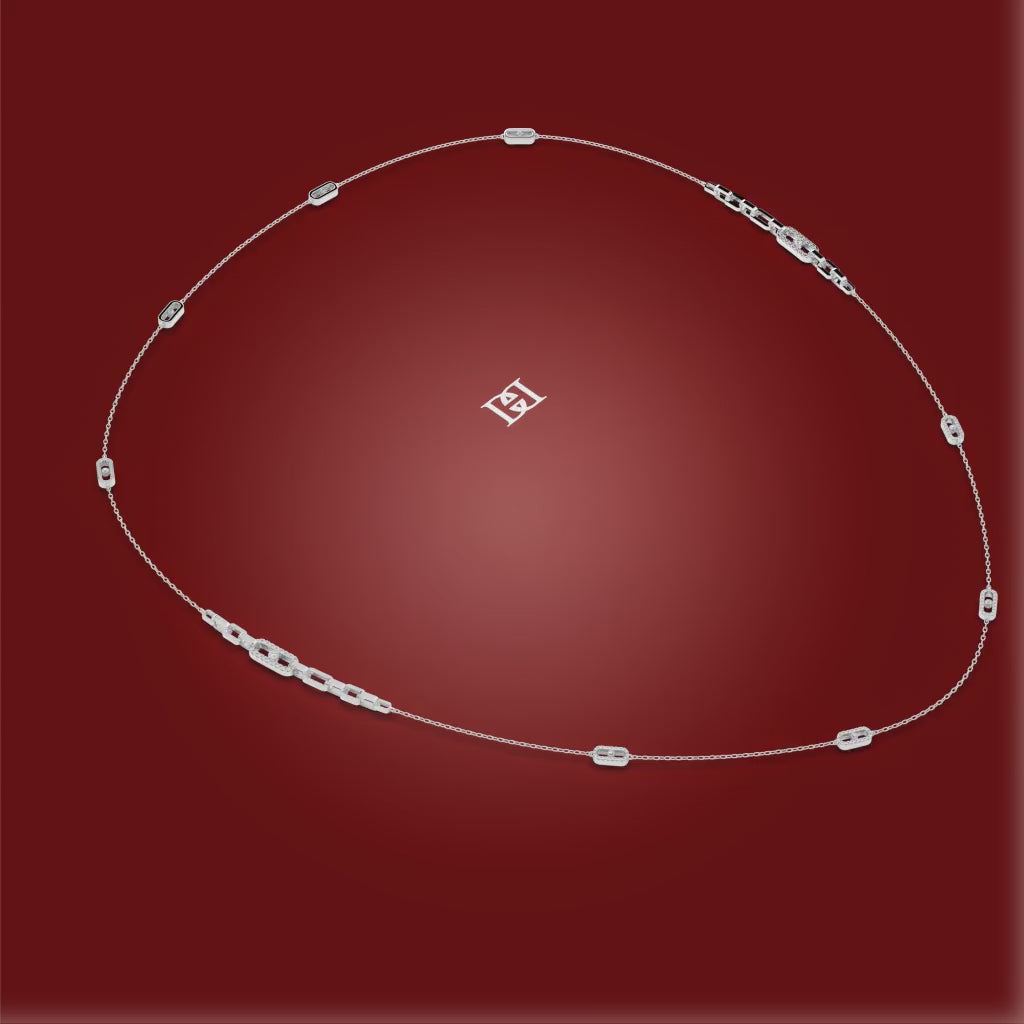 The Cadence Necklace brings a sense of fluid elegance and rhythmic beauty to your style. Its delicate chain is adorned with a series of finely crafted links, each one sparkling with diamonds in a harmonious, continuous pattern. This necklace is a true work of art, a subtle yet stunning piece that will add a graceful flow to your everyday style.