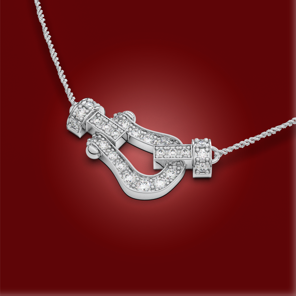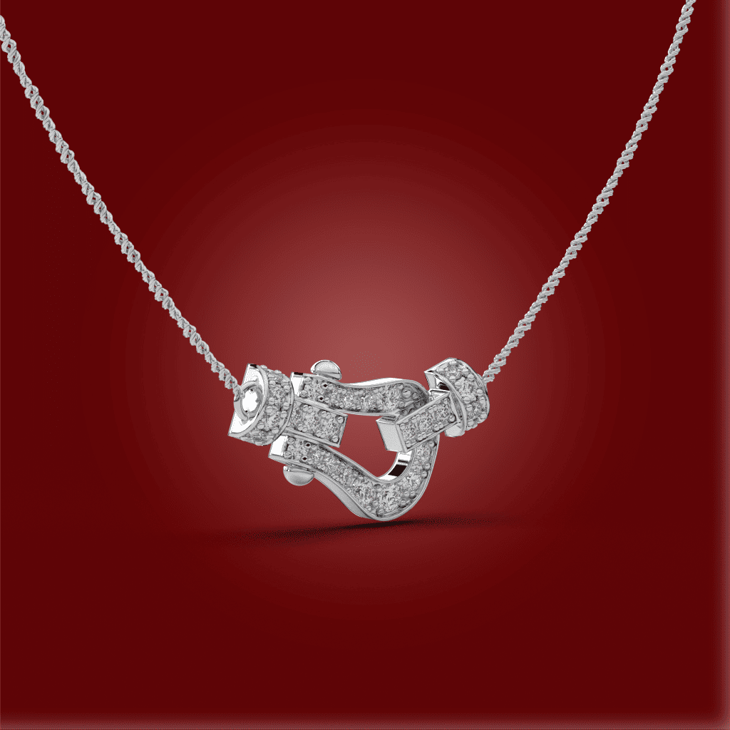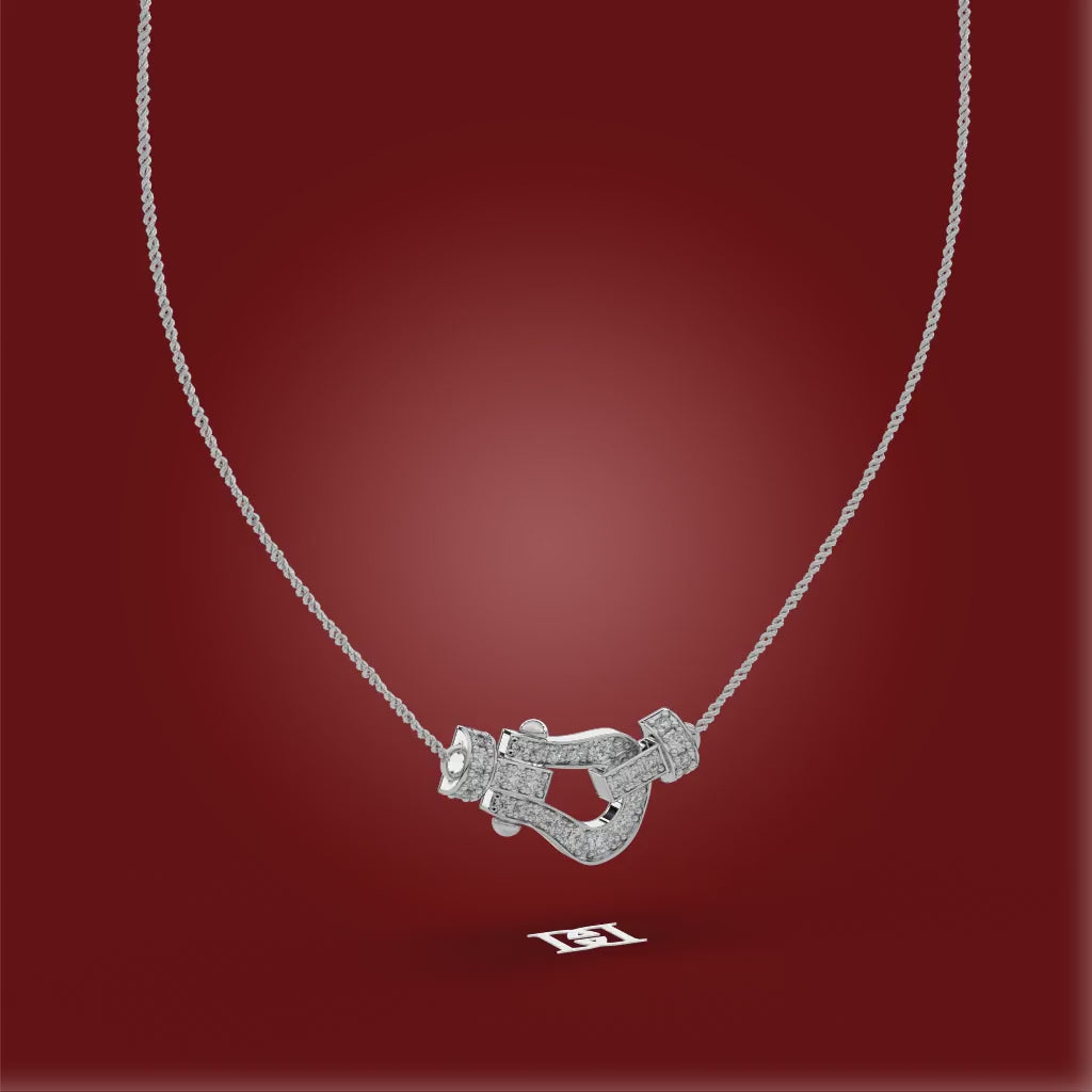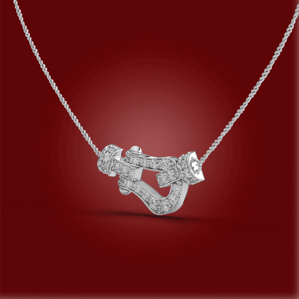 The Gracia pendant  is an elegant statement of delicate bonds and timeless connections. Its centerpiece features a beautifully crafted design, meticulously encrusted with brilliant pavé diamonds that sparkle with every movement. This elegant focal point is joined by a slender chain, creating a harmonious blend of refined simplicity and dazzling luxury. This bracelet is a beautiful reminder of the intricate connections that shape our lives.