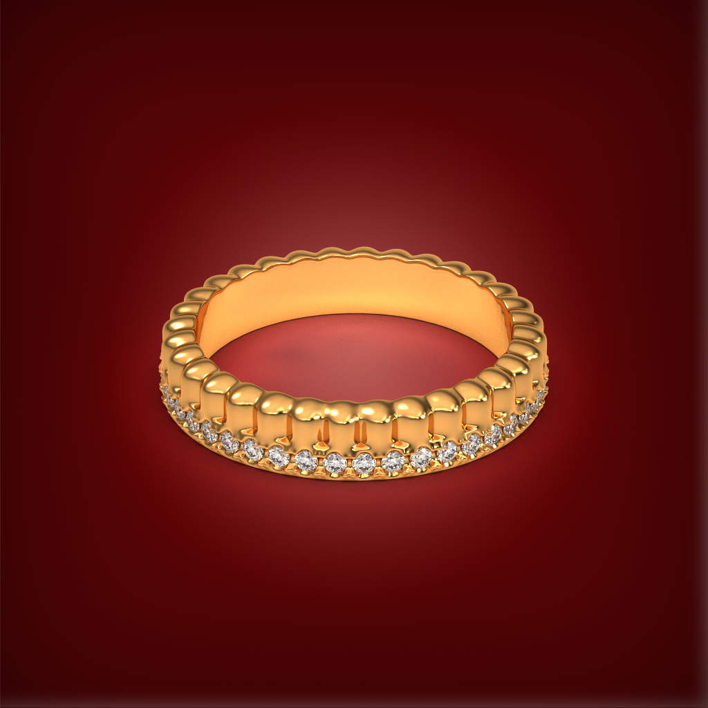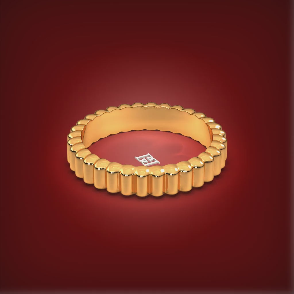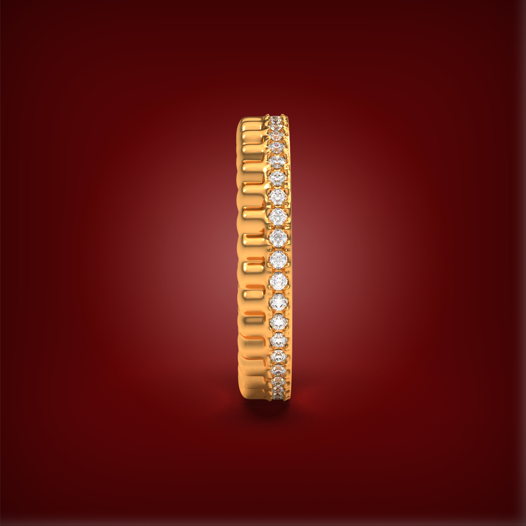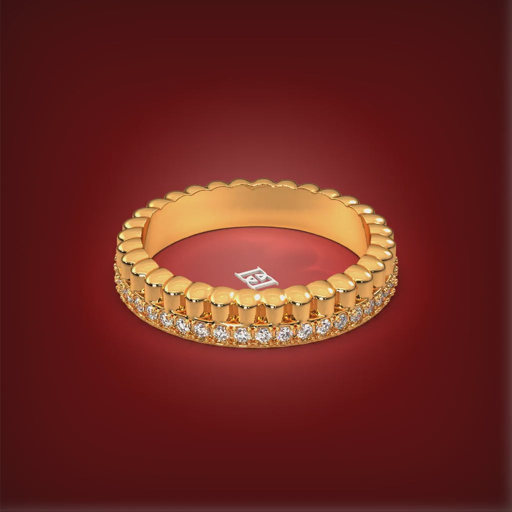 The Parallel Set is a testament to the elegance of modern design and the beauty of a shared journey. This exquisite duo features two bands: one a polished, ridged gold for rich texture and warmth, and the other a luminous, matching band encrusted with a continuous row of brilliant diamonds. Designed to be worn side by side, these rings create a stunning play of light and shadow, symbolizing a path of style and substance that runs in perfect harmony.